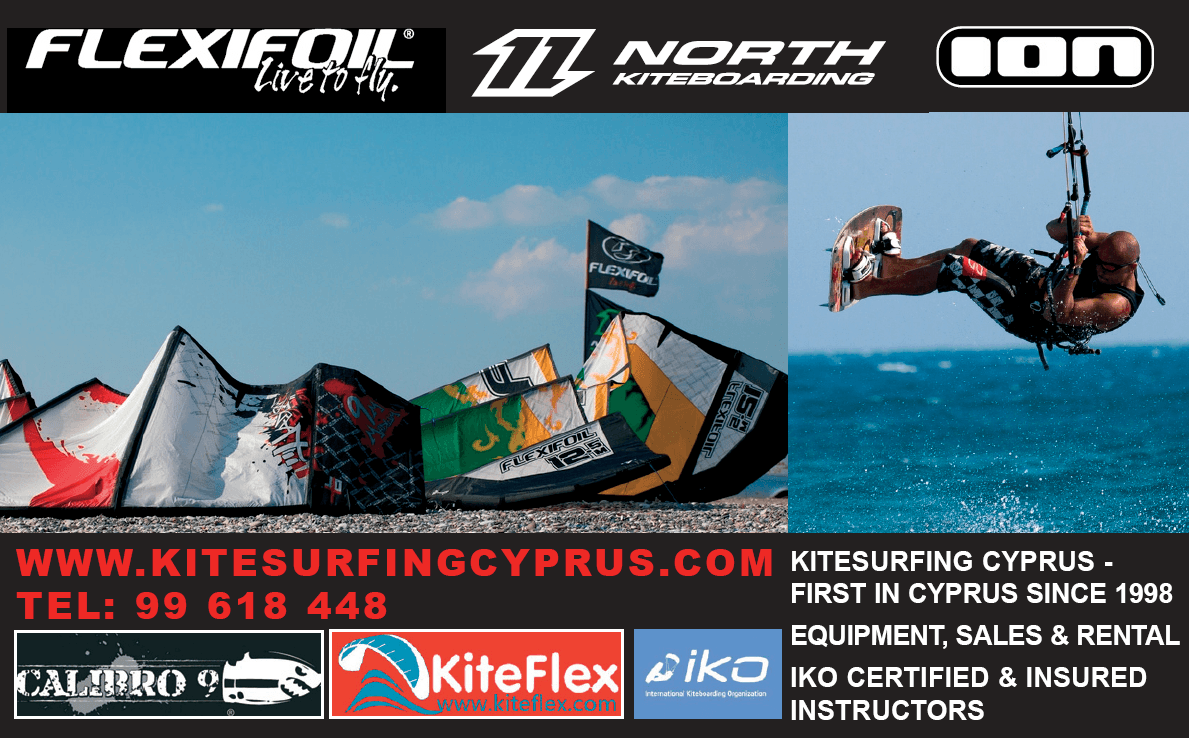 DESCUBRE LAS INCREÍBLES CONDICIONES DEL VIENTO CON KITEFLEX El kiteboarding es un increíble deporte acuático que combina aspectos del snowboard, el windsurf, el wakeboard, el surf, el monopatín, el parapente y la gimnasia en un solo deporte. Es un deporte acuático extremo de superficie. El kitesurf es un estilo de kiteboarding específico para surfear olas, que utiliza tablas con una forma específica para este fin o tablas de surf estándar. Como Kiteflex tiene una sólida experiencia en el campo desde 1998, cuando se trata de elegir su instructor de kitesurf en Chipre elija sabiamente; sin duda no hay mejor opción en esta isla. Hablamos: Griego, Inglés, Francés, Ruso, Polaco, Árabe, Eslovaco y lenguaje corporal.