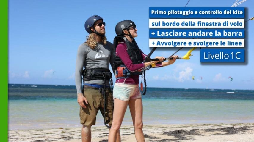 Livello 1C - Primo pilotaggio e controllo del kite sul bordo della finestra di volo + Lasciare andare la barra + Avvolgere e svolgere le linee