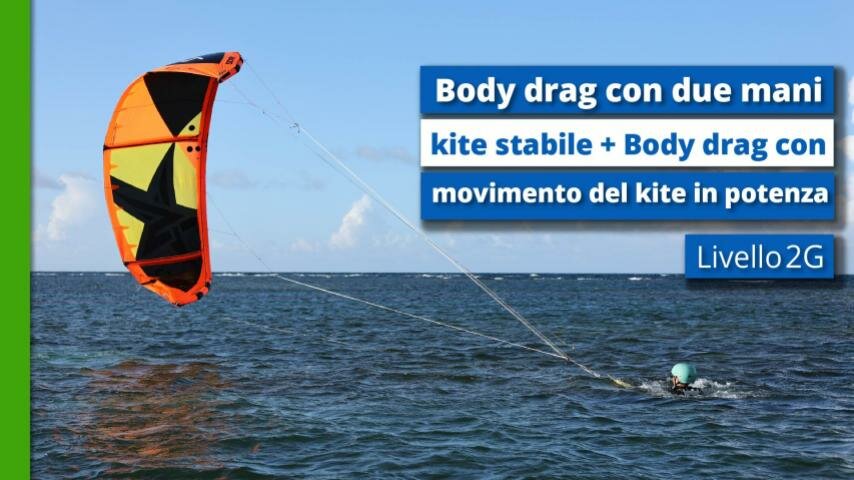 Livello 2G - Body drag con due mani e kite stabile + Body drag con movimento del kite in potenza